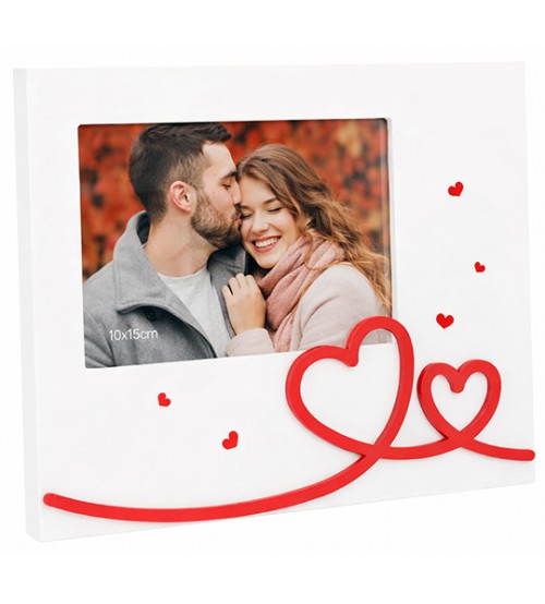 Нежна и стилна фото рамка със сърца в бял цвят, създадена за най-любимите моменти. Подходяща за снимка 10x15 см и идеална като подарък за Свети Валентин, годишнина, рожден ден или просто изненада за любим човек.