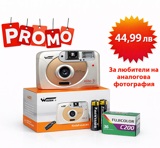Фотоапарат Wizen Elite-3 с филм FujiColor C200 – за любители на аналоговата фотография Открийте чара на класическата фотография с фотоапарата Wizen Elite-3 – лесен за употреба модел, създаден за тези, които ценят ис...