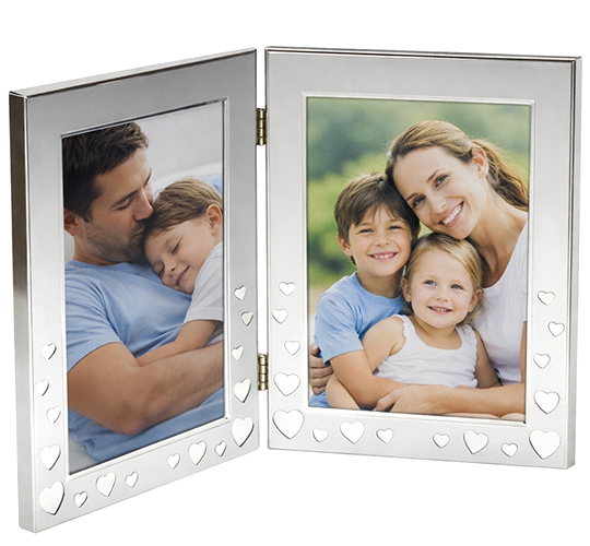 Двойна Сребриста Фото Рамка Със Сърца – За 2 Снимки 10x15 и 13х18 См Стилна двойна фото рамка в сребрист цвят с нежни декорации сърца, предназначена за 2 снимки. Идеална за семейни, детски и бебешки снимки, как...