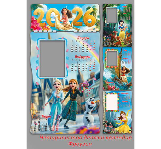 Детски четирилистов календар „Фроузън“ 2026 Подарете усмивка на вашето дете с красивия четирилист.....