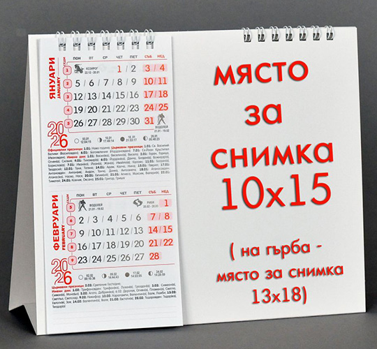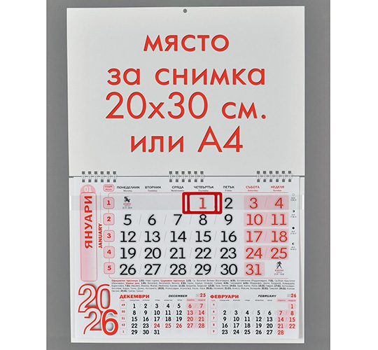 11.99 лв.Червен работен календар с ваша снимка. Освен изображението, можем да отпечатаме за Вас и надпис. Под.....