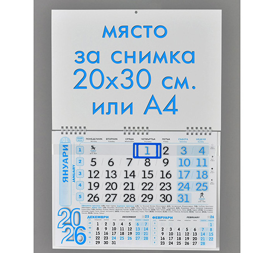 11.99 лв.Син работен календар с ваша снимка. Освен изображението, можем да отпечатаме за Вас и надпис. Под.....