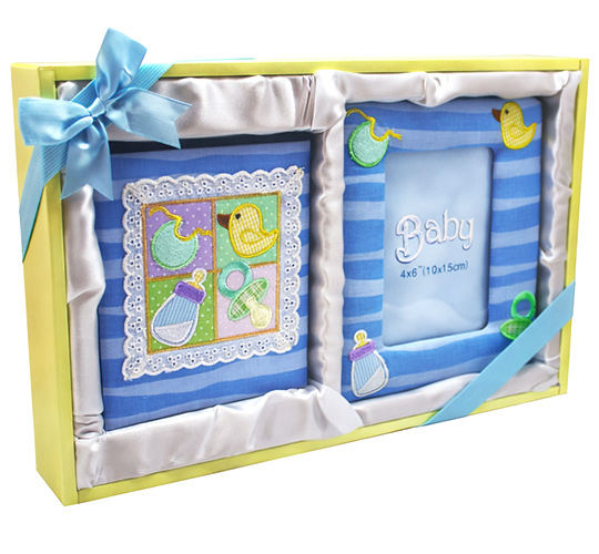 Бебешки Фотоалбум И Рамка За Снимка – Комплект (Син) Запази най-милия спомен от първите дни на .....