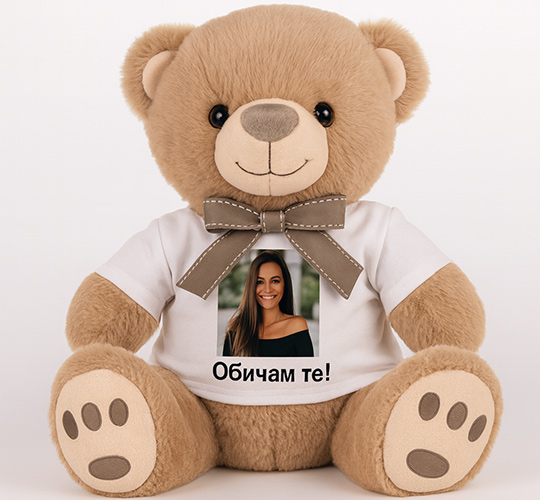 Плюшено Мече 28 cm с Тениска и Персонална Снимка Това голямо плюшено мече 28 cm е идеалният под.....