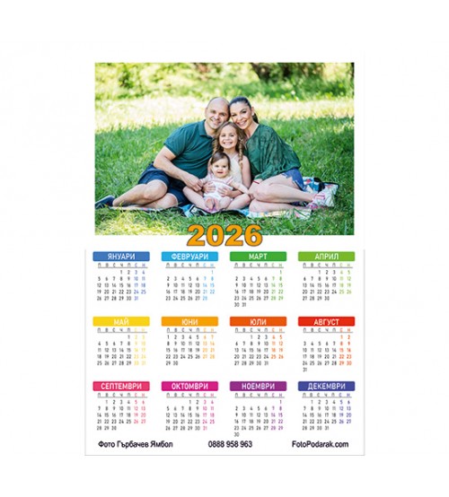 Детският календар със снимка на Вашия малчуган е комбинация от потребното и приятното. Заедно с любимите си герои Вашето дете ще се почувства наистина като в приказка. Календарът e еднолистен.