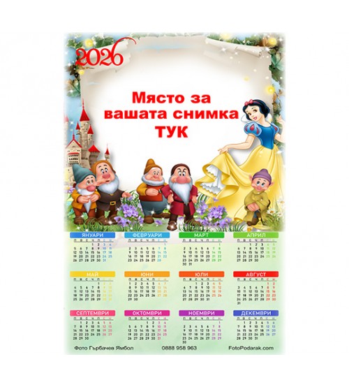 Добави снимка:Надпис:Детският календар със снимка на Вашия малчуган е комбинация от потребното и приятното. Заедно с любимите си герои Вашето дете ще се почувства наистина като в приказка. Календарът e еднолистен.