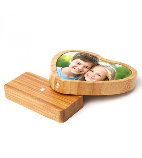 Изработено от висококачествен бамбук, сърцето впечатлява с топъл естествен цвят и гладка повърхност, която подчертава детайлите и цветовете на снимката. Подходящо е за подарък за Свети Валентин, годишнина, сватба или рожден ден.