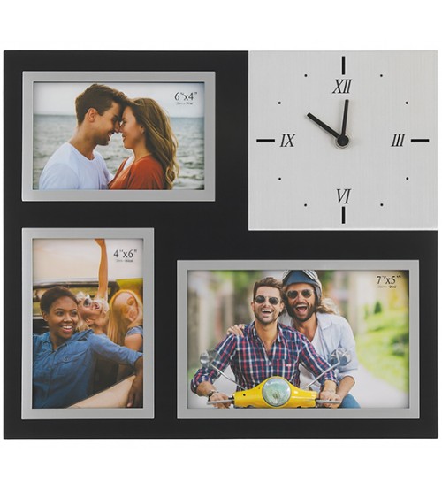 Моделът съчетава часовник и фоторамка с място за три снимки, които можете да персонализирате по свой вкус. Подходящ е за семейни снимки, сватбени моменти, детски спомени или подарък за приятели.